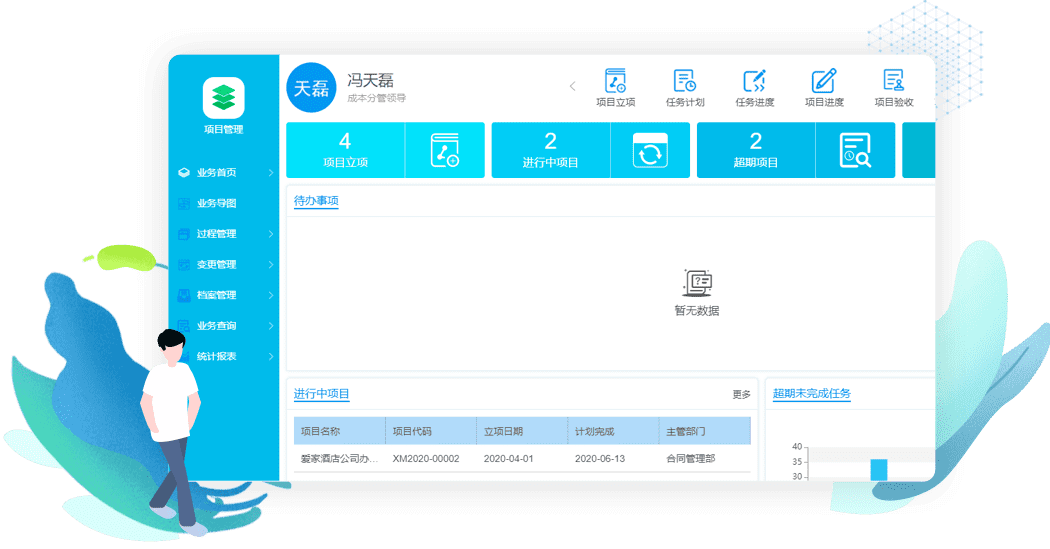 实现项目从立项、计划、执行、交付和监控的全过程管理