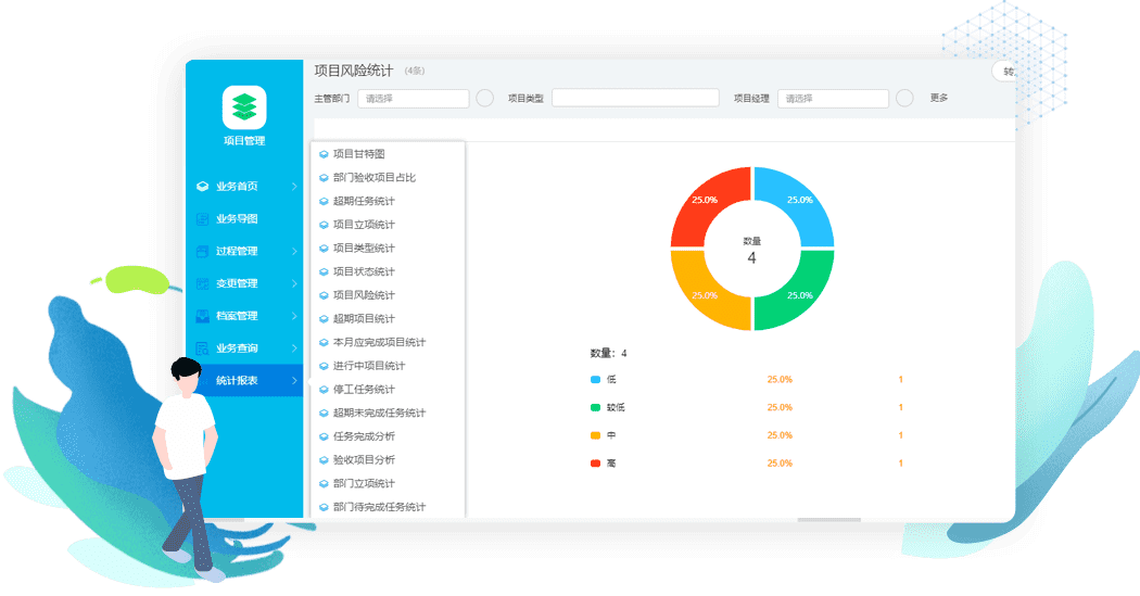 通过周报、变更单、项目任务管理,自定义流程,完成告知,项目风险及时反馈与控制,及时更新项目信息,项目建设过程中可以随时进行项目沟通及汇报,记录可跟踪、可追溯、可查询